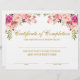 Profesional, Personalizable, Certificado de Finalización. Ideal para clases, cursos de capacitación, escuelas, cursos de negocios y más. Personalice el texto con su personalizado. Elegante acuarela rosa Rubor Floral y vegetación botánica. Guión dorado.