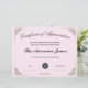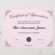 Lámina Certificado rosa de apreciación con logotipo Perso