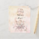 Oro subió, fondo degradado rosa rubor. Una novia rubia en el fondo. Personalice y agregue un nombre y detalles del fiesta. 1 hoja = 1 borde impreso de invitación