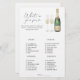 Una botella de champán de color agua elegante con dos copas de champán y un texto "Pon el champán. Ella está cambiando su nombre".