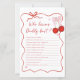 Add an extra dose of fun to your baby shower with our delightful Cherry Baby Shower Game Cards! Perfect for creating memorable moments, these cards are designed to entertain and engage your guests. Share the joy of welcoming your little one with friends and family!