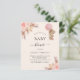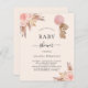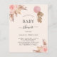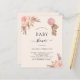 Para una moderna ducha tipo boho. Un suave fondo beige. Decorado con rosa de oro y flores rosadas, rosas, pampas y un chica de oso de peluche sosteniendo un globo rosa. Personalice y agregue un nombre y detalles del fiesta. 1 hoja = 1 borde impreso de invitación al borde.