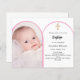Añade tu propia foto de tamaño vertical. Marco fotográfico en forma de arco rosa. Un color de fondo blanco. Personalice y agregue un nombre y detalles. 1 hoja = 1 borde impreso de invitación al borde.