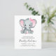 Invite a amigos y familiares a honrar a la futura mamá con esta moderna y bonita invitación de Baby Shower a los elefantes. **POR FAVOR LEA ANTES DE COMPRAR** Nuestra pequeña gama de artículos de papelería de presupuesto mide 4,5" x 5,6" y se ajusta dentro de un sobre A6, que están disponibles en todo tipo de colores en su tienda de papelería local o usted puede añadir uno blanco a su pedido antes de realizar el pago. El material de cartón es blanco brillante con un acabado semi-brillante y peso de 110 libras, lo cual es adecuado para invitaciones. NO le aconsejamos que elija la opción de papel satinado ya que es un papel mucho más delgado de 80lb, que es más parecido a las páginas de revista que a las de cartón. Si prefiere una invitación clásica de tamaño 5x7 impresa en un material de 120lb con acabado mate, puede transferir este diseño a una tarjeta plana utilizando las opciones de diseño de transferencia. Las tarjetas planas no están dentro del rango de presupuesto, pero usted tiene una mayor variedad de tamaños y opciones de cartón y se envían con sobres. La forma y el tamaño más adecuados para el diseño aparecerán en las opciones de transferencia de diseño. Si realiza cambios en la forma o el tamaño o elige otro producto y el diseño está recortado de alguna manera o no aparece directamente en la página, necesitará usar el servicio de diseño activo para que alguien ajuste el diseño por usted, a menos que se sienta cómodo haciéndolo por usted mismo. No hay ninguna comprobación o intervención manual entre la colocación del pedido y la impresión, por lo que lo que ve en la pantalla es lo que se imprimirá y se le enviará. Con esto en mente, por favor, compruebe tres veces si hay algún error ortográfico o información incorrecta antes de realizar el pedido. La fotografía de los modelos es para fines ilustrativos y puede cambiarse a uno propio.