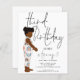 Una alternativa de papel de 4,5" x 5,6" con la opción de añadir sobres si lo desea. Un diseño genial para el tercer cumpleaños de tu hija tiene un guión estilo escritura a mano a la moda y un ilustracion abstracto de una niña pequeña en un dulce mazmorra con un patrón arcoiris sobre un fondo blanco.