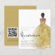 Invitación QR Quinceañera Chica de Oro Presupuestado. Un precio económico menor 4,5" x 5,6" alternativa. Disponible en un ALMACENAMIENTO DE TARJETAS SEMI GLOSS 110 lb que es la opción predeterminada (recomendado para invitaciones), O UN ACCESO DE PAPEL DE LADRILLO DE 80 lb SATIN (ideal para los gabinetes). Esta versión de esta invitación tiene en mente a los fiestas que tienen lugar en un hotel o restaurante (o cualquier lugar con un sitio web), reemplazar el código QR de la parte posterior por un código QR en su sitio web. Puede crear códigos QR en línea de forma gratuita. O simplemente buscar "creador de código QR" y muchas opciones aparecen para crear gratis. También puede borrar el código QR y el texto de la parte posterior si no es necesario a través del personalizar. Elegante estilo para tus invitaciones a fiestas de 15 años con la retrovista de un chica de cabello oscuro con un hermoso vestido de oro brillante a la derecha, y Quinceañera en un set de escritura a mano. Personaliza fácilmente el resto del texto a tus propios detalles. Un fondo dorado de coordinación está en el otro lado, que puede cambiarse a otro color si lo desea a través del personalizar, al igual que el color del texto.