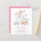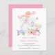 Una alternativa de precio presupuestado. Los sobres son un extra opcional. Estilo caprichoso para invitar a los amigos de su hija a su fiesta de cuarto cumpleaños, con esta elegante bailarina de ballet rubio y pájaro, mariposa, globos y flores rosadas y lilas. Fácil de personalizar los detalles según sus propios requisitos. También puede cambiar los colores del texto y el color de fondo rosado en la parte posterior si lo desea a través de la opción Personalizar.
