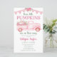 Esta adorable invitación al pequeño Chica de la Tripleta Pumpkin en Baby Shower con una camioneta color rosa con calabazas rosas y blancas sería perfecta para tu ducha. Es fabuloso para celebrar una caída o cosecha de chicas trillizos. Tiene una espalda suave y suave de color rosa con pequeños puntos de polka blanco. ¡Qué lindo dar la bienvenida a tres dulces chicas de recién nacido!