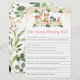 Estas adorables "Who Knows Mami Best Cards" son una divertida actividad en Baby Shower. Simplemente pasen por el Baby Shower donde los huéspedes se divertirán respondiendo preguntas sobre la madre que será. ¡La persona con la más correcta gana! El diseño presenta bonitos animales de bosque con flores rosadas y acentos de Relieve metalizado dorado.