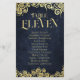 Presentamos una encantadora carta de asientos bodas azul marino con un toque de elegancia refinada. Adornado con una tipografía elegante y torres dorados intrincados, este signo encarna el encanto y la sofisticación en perfecta armonía.