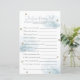 Esta elegante tarjeta de juegos de nubes 9/nube "¿Quién conoce mejor a mamá?" para bebé, presenta un fondo blanco con nubes azules onduladas en acuarela. Personalízalo para tus necesidades. Puedes encontrar productos coincidentes en mi tienda.