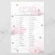 Esta elegante tarjeta de juegos de nubes 9/cloud nine "name that baby animal" (nombre a ese animal bebé) cuenta con un fondo blanco con nubes rosa onduladas en acuarela. Personalízalo para tus necesidades. Puedes encontrar productos coincidentes en mi tienda. CLAVE DE RESPUESTA: SWAN: L, CABRA: I, HAWK: N, OWL: E, APE: A, CABALLO: O, KANGAROO:G, BOAR: D, MOUSE: J, GIRAFFE: C, DEER: M, TURQUÍA: F, PIG: K, BEAVER: H, MOSQUITO: B