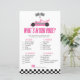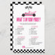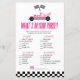 Este es un auto de raza rosada Lo que está en tu juego de Baby Shower con bolso. *Qué hay en tu bolso? - Los invitados recibirán puntos por cada artículo que tengan en su cartera. ¡Quien tenga más puntos, gana!