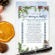 Hace frío afuera, pero nuestros corazones están abrigados de alegría. Diseño de agua de invierno acogedor con escritura caligráfica moderna, hojalía y bayas, chocolate caliente o cacao, malvaviscos y caña de caramelo, ramas de árbol evergreen sobre fondo nevado. El texto puede ser fácilmente personalizado para un diseño único y de tipo para su día especial.