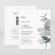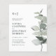 Presupuesto Eucalyptus QR Código RSVP Invitación a Boda en Monograma Blanco. Nuestra sencilla y asequible invitación a bodas botánicas cuenta con una elegante rama de acuarela de eucalipto en tonos salvia y verde polvoriento del monograma y del texto de invitación a su lado. En la parte posterior de la invitación también se muestra el código QR de su sitio web boda, así como la propia dirección URL del sitio web, lo que permite a los invitados acceder fácilmente a RSVP en línea y ver todos los detalles enviados normalmente en un paquete boda. El código QR actualizado en esta invitación le permite generar su propio código QR de sitio web boda simplemente escribiendo la URL de su sitio web en la plantilla de personalización donde se indique. Todo el texto de ejemplo se puede revisar fácilmente con su propia información sobre la plantilla de personalización.