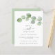 Presupuesto Elegante Eucalyptus código QR Guardar la fecha A precio del presupuesto PEQUEÑO 4.5" x 5.6" alternativa. Disponible en un ALMACENAMIENTO DE TARJETAS SEMI-GLOSS de 110 lb que es la opción predeterminada (más grueso para las invitaciones), O UN ALMACENAMIENTO DE PAPELES DELGADOS SATIN FINISH DE 80 lb (ideal para los gabinetes). Agregue su código QR al sitio web de su boda en la parte posterior. Una elegante rama de eucalipto en verde con un toque de oro fluye desde arriba a la derecha. Personaliza fácilmente el texto a tus propios detalles. También puede cambiar estilos de texto y colores, así como los colores de fondo a través de la opción personalizar adicional si lo desea.