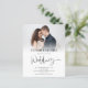 NOTA IMPORTANTE: Hay dos opciones de papel para elegir para este tamaño (4,5 x 5,6”) en la gama Budget. Para este producto, recomiendo encarecidamente el semi-brillante que es un cartón de 110 gsm, similar en grosor a una postal. La opción Satin es un papel mucho más delgado de 80 gsm. El valor predeterminado está configurado en semi-brillante. Invitación de boda con superposición de foto de código QR de guión Budget. Un guión establecido para la boda y el resto del texto que puede personalizar fácilmente y reemplazar la foto de muestra con la suya. También puede cambiar los colores del texto y del fondo en ambos lados si lo desea. Simplemente reemplace la URL de muestra en el campo de plantilla con su propia URL y su código QR se creará automáticamente.
