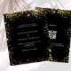Una invitación de boda moderna y elegante. Fondo negro decorado con finos destellos de purpurina dorado. Personalice y agregue sus nombres y detalles del boda. Letras de color blanco. Atrás: agrega tu enlace/url a tu sitio web boda para obtener información y/o RSVP. 1 hoja = 1 borde impreso de invitación al borde.