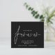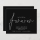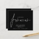 Código QR Que Decidimos Para Siempre Negro Guardar La Fecha. Un precio económico menor 4,5" x 5,6" alternativa. Disponible en un ALMACENAMIENTO DE TARJETAS SEMI-GLOSS de 110 lb que es la opción predeterminada (más grueso para las invitaciones), O UN ALMACENAMIENTO DE PAPELES DELGADOS SATIN FINISH DE 80 lb (ideal para los gabinetes). Agregue su código QR al sitio web de su boda en la parte posterior reemplazando el código QR del ejemplo. Tipografía blanca sobre diseño negro clásico para invitar a sus invitados a guardar su cita. Decidimos por Forever que está en un elegante guión está en el centro. El resto del texto que puede personalizar fácilmente. Los colores del texto y del fondo pueden cambiarse si desea adaptarse mejor a su tema boda a través de la opción personalizar.