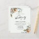 Invitación de boda con código QR de respuesta de presupuesto Caligrafía floral delicada de tono rosado y melocotón... Nuestra invitación de boda de acuarela floral presenta un arreglo de flores pastel blancas, rosadas y de melocotón con vegetación de eucalipto que bordean el texto de su invitación en escritura de caligrafía moderna y tipografía serif elegante. El reverso de nuestra invitación asequible también muestra el código QR del sitio web de su boda, así como la URL del sitio web que permite a sus invitados responder en línea y ver todos los detalles que normalmente se envían en un paquete de boda. La plantilla gráfica del código QR y todo el texto de ejemplo (aparte de los elementos gráficos de caligrafía) se pueden revisar fácilmente con su propia información en la plantilla de personalización.