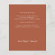 Esta invitación a hoja de papel es nuestro precio más bajo en este diseño. El papel no es tan grueso como una típica invitación a una boda, es un 12.5, y una invitación formal es 17.5. Esta diferencia reduce el coste, pero debe ser consciente de esto antes de realizar el pedido. Si quieres una tarjeta más gruesa, por favor compra nuestro otro ejemplo en nuestra colección. Esta hoja tiene un frente blanco y un fondo de terracota al revés. En la parte delantera, aparecerá el código QR de su sitio web boda, donde sus huéspedes podrán ver RSVP, así como sus nombres. Al revés, se añade un mensaje personal a los clientes. A continuación, puede colocar sus primeros nombres, o si lo prefiere, puede eliminarlo y firmarlo en casa. Cualquier pregunta no duda en contactarme.