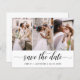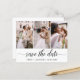 Código QR - Paisaje moderno y elegante Horizontal Tres (3) Foto Guardar el imán Boda de fecha con tipografía manuscrita a mano. El imán para guardar la invitación de fecha incluye tipografía y moda de guiones y un diseño sencillo al que puede agregar su imagen personalizada de fotografía de compromiso.