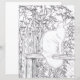 Long haired cat sitting on wooden fence railing. He is staring through tall weeds against a lattice fence. Photo enhanced at craiyon.com.