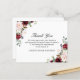 Una elegante y hermosa tarjeta de agradecimiento funeraria incluye dos arreglos florales rosas y rojas. Gracias está escrito en un guión tradicional. Todo el texto se personaliza fácilmente.