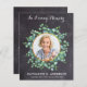 Moderna acuarela Eucalyptus Greenery Sympathy Photo Funeral Gracias Cartas. Estas tarjetas funerarias de simpatía incluyen una plantilla única de fotos en la corona botánica de eucalipto, nombre y fecha, en un diseño rústico de pizarra. Personaliza tu mensaje de agradecimiento. Estas tarjetas de simpatía conmemorativas son perfectas para tarjetas de agradecimiento funerarias, o celebración de tarjetas de agradecimiento de vida. DERECHOS RESERVADOS © 2020 Judy Burrows, Black Dog Art - Todos los derechos reservados. Compasión por el presupuesto Funeral Gracias Tarjeta Eucalyptus