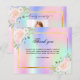 Una tarjeta de agradecimiento de simpatía elegante y niñita con foto. Un arcoiris, fondo holográfico de color rosa, violeta, azul y verde menta, decorado con flores. Personalice y agregue su nota de agradecimiento.