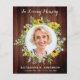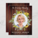 Acuarela moderna Floral de girasol y simpatía por eucalipto Foto Funeral Gracias Cartas. Estas tarjetas funerarias de simpatía presentan una plantilla de fotos única en la flor de sol y eucalipto, corona verde, nombre y fecha, en un diseño rústico de madera. Personaliza tu mensaje de agradecimiento. Estas tarjetas de simpatía conmemorativas son perfectas para tarjetas de agradecimiento funerarias, o celebración de tarjetas de agradecimiento de vida. DERECHOS RESERVADOS © 2020 Judy Burrows, Black Dog Art - Todos los derechos reservados. Compasión Rusa Presupuestaria Funeral Gracias Girasol