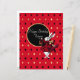 El saludo de cumpleaños festivo incluye el ilustracion vintage del Conejo Blanco con la prenda de la Reina de los Corazones teñida de rojo con el círculo de texto de personalizable negro y dorado y el fondo de diamante rojo / oro / negro