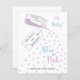 Un presupuesto azul y rosa de corazón de amor confetti género revelar invitación. El diseño consiste en una jarra decorativa de vidrio que se lee casera con amor. El frasco está lleno de elegante confeti azul y rosa en forma de corazón de amor, que cae en la frase azul o rosa que para ti piensa?. La etiqueta de la jarra está decorada con un pie de bebé rosa y azul, y dice Bebé su apellido revelar poco género.