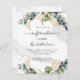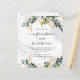 Impresión de mármol como fondo decorado con vegetación eucalipto y hojas doradas. Una cruz dorada. Personalización y nombre y detalles de la ceremonia.