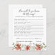 Esta tarjeta de juegos para bebés cuenta con bonitas flores de invierno de color agua suave en tonos rojos y blancos, equilibradas con una vegetación exuberante, lo que la convierte en una paleta cálida y ventilada. Cambia el color de fondo o agrega gráficos para que coincidan con el tema de la ducha. Necesita gráficos coordinados, por favor contáctame para un pedido de personalizado. Por supuesto, no es necesario que juegues en la ducha para bebés, pero ten en cuenta que vas a tener un grupo de todas las edades, y la mayoría de los clientes probablemente nunca se han encontrado antes que el fiesta. Mezclar algunos de estos clásicos juegos de ducha para bebés es la manera perfecta de romper el hielo. Estas tarjetas diseñadas profesionalmente son rápidamente personalizable. Agregue la redacción de su personalizado a este diseño utilizando los cuadros "Editar esta plantilla de diseño" en el lado derecho del elemento, o haga clic en el botón azul "Personalizar" para organizar el texto, cambiar los tipos de letra y los colores y también agregar información o imágenes adicionales a este diseño. Haga clic en "Personalizar adicional" para abrir opciones completas de edición. Si necesita algún elemento de coordinación, (gracias a las tarjetas, etc.) por favor contáctame para un pedido de personalizado. **** Para las solicitudes de personalizado con las que necesita mi ayuda, no coloque esta mercancía en su carrito. En su lugar, envíeme su solicitud por correo electrónico a lauralise@iyhtvdesigns.com Una vez que el artículo esté disponible, se le enviará por correo electrónico un enlace a su mercancía. Puede usar ese enlace para realizar su pedido. Por favor, espere hasta 48 horas.