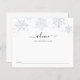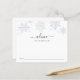 La tarjeta de actividades de la ducha de novia incluye copos de nieve de plata. La tarjeta de consejo pide a los invitados que compartan consejos para que la novia esté mientras se prepara para el matrimonio. También se puede cambiar la redacción para que se aconseje a los padres de un recién nacido.
