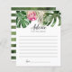 Modernas tarjetas de consejo para novias y bodas con temática tropical con ilustracion acuático de hojas verdes de monstera, hojas de palma y flor rosa king protea. Pide a los clientes que rellenen esta tarjeta durante la ducha. ¡Será un gran placer!