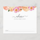 La tarjeta de actividades para la ducha de bebé incluye flores color rosa agua y cítricos. La tarjeta de consejo pide a los huéspedes que compartan consejos para que los padres estén mientras se preparan para el bebé.