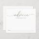 La tarjeta de actividad de la ducha para bebés incluye un guión moderno de caligrafía dorada. La tarjeta de "consejo" pide a los huéspedes que compartan consejos para que los padres estén mientras se preparan para el bebé.