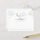La tarjeta de animación para la ducha de bebé tiene nubes color azul y estrellas doradas. La tarjeta de consejo pide a los huéspedes que compartan consejos para que los padres estén mientras se preparan para el bebé.