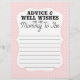 Este es un artículo lindo para usar en las duchas para bebés. Proporciona a la gente un espacio para ofrecerle buenos deseos y consejos a la madre. La parte posterior está en blanco para que haya espacio adicional para escribir algo.
