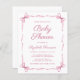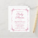 Invitación a la ducha de una niña de precio reducido con acuarelas de color rosa suave con cintas delicadas y arcos de coqueta, que combinan una estética mínima con un toque de encanto vintage. Las palabras "Baby Shower" y el nombre de la futura madre se exhiben en un elegante guión rosa, mientras que los detalles de la ducha se presentan en letras simples y limpias de color rosa, creando un diseño atemporal y elegante.