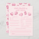 Típico tema de San Valentín ducha bebé predicciones y tarjeta de consejo con ilustraciones de macarones con forma de corazón rosa. Un juego perfecto para jugar durante la ducha y sin duda será un gran placer. La tarjeta pide a los invitados que predigan cómo sería el bebé.