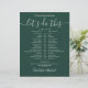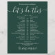 Este sencillo y elegante cronograma de boda verde esmeralda puede ser personalizado con los detalles de su boda en letras blancas modernas. Diseñado por Thisisnotme©