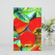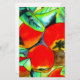 con un diseño artístico original de acuarela pintada de jugo, manzanas rojas colgando de los árboles del huerto. Diseño de fruta colorido, rojo y amarillo brillante yuxtapuesto a las hojas de color verde limón.