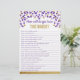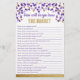 ¿Cuán bien conoces a la Novia? Juego para la ducha de la novia en púrpura y dorado. Un poco de trivia sobre la nueva novia siempre es divertido de jugar y desafía a tus invitados.