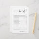 Rompe el hielo con este juego "¿Cuánto conoces a la novia?" que pide a los invitados que respondan preguntas sobre la novia y sumen el número correcto. Utilice la herramienta de diseño para personalizar las preguntas si lo desea, o cambie los colores para que coincidan con el tema de la ducha de la novia.