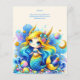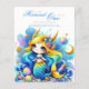 Invitación de cumpleaños de sirena para niñas, hijas en colores azul verde amarillento y dorado para 1 año (se puede editar para cualquier edad). Diseño de LeahG. Gráficos de Grafixdeals.com.