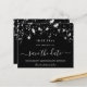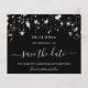Una tarjeta de guardar fecha femenina y trendy para una fiesta de cumpleaños de 40 años (o cualquier edad). Un fondo negro elegante decorado con estrellas plateadas falsas. Personalice y agregue una fecha y nombre/edad 40. El texto: Guardar fecha está escrito con un estilo de letra manuscrita trendy grande.