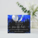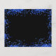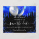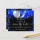 Un fondo negro decorado con goteos azules reales, confetti y globos. Personalice y agregue una fecha y un nombre/edad. El texto: Save the Date se escribe con un gran guión de estilo escrito a mano.